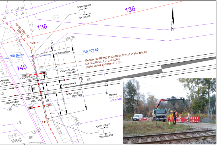 1. Ingenieurbüros und Baufirmen erstellen digitale Lagepläne im Rahmen von Planungen oder Bauarbeiten für die Deutsche Bahn.